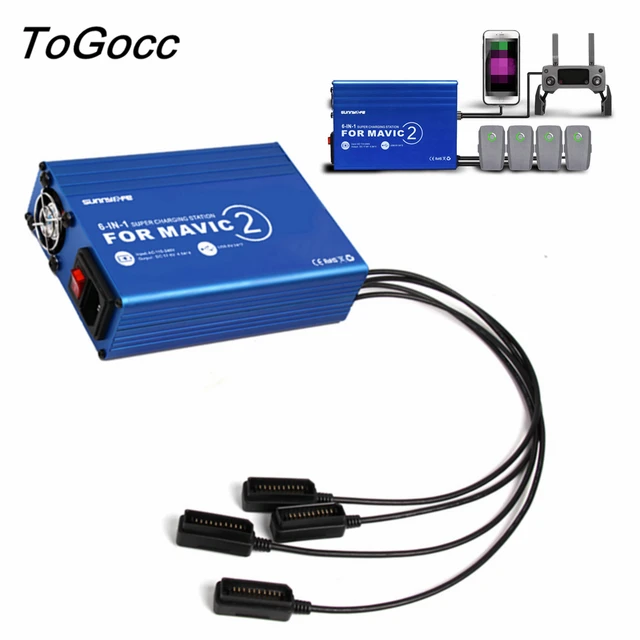 Specially designed for DJI Mavic 2 Pro & Zoom, Can charge 4 batteries at one time, dual USB port can output 5V/2A power for DJI Mavic 2 remote control and smartphone charging;.
